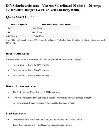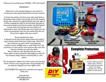 When you purchase batteries from us, we include all the necessary connection cables to convert to 48 volts, custom-cut to the exact length required to connect your solar board to the batteries. Inverter cables are provided with your inverter purchase. Please note that the solar board comes as shown, without battery or inverter cables. No one can beat our prices on panels, batteries, and inverters.
